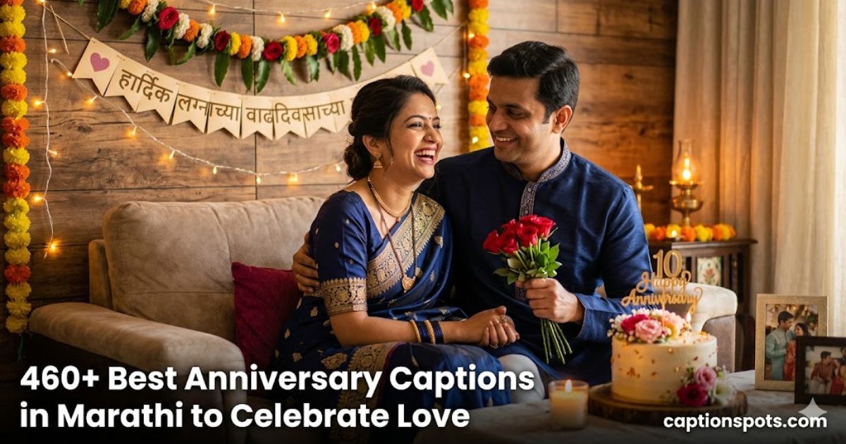 Anniversaries are moments of love, laughter, and memories. With our 460+ Marathi anniversary captions, you can effortlessly express your feelings and make your special day memorable. Whether it’s a short and sweet caption, a romantic message, or a funny one to bring a smile, these captions are crafted to celebrate love in every unique way. Share your emotions, make your partner feel special, and let your anniversary post shine with the perfect Marathi words.