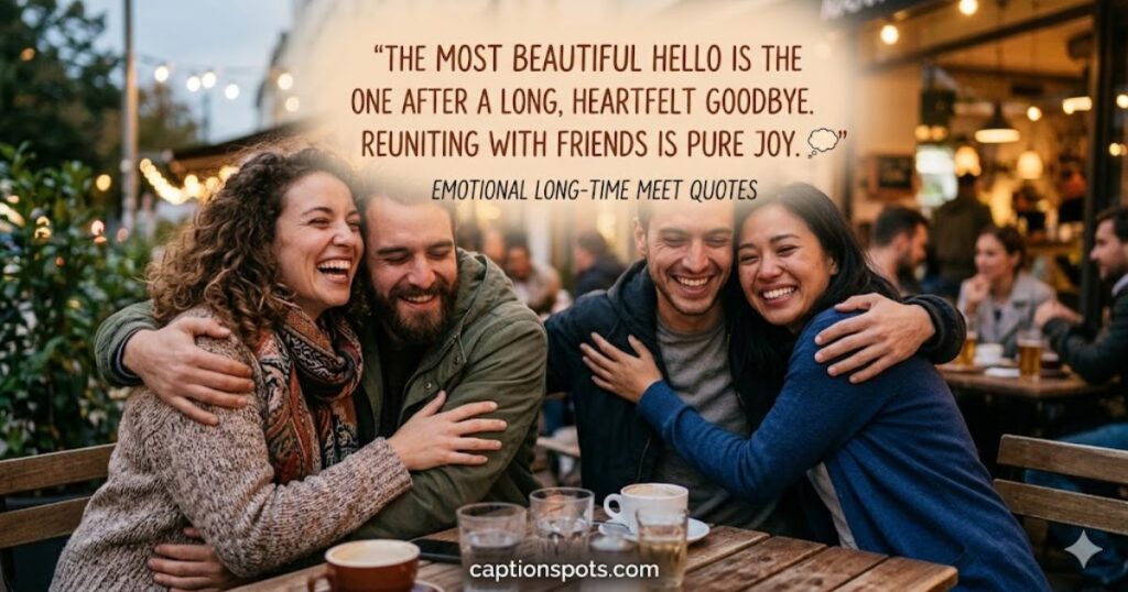 These are captions specifically crafted to express emotions, joy, and nostalgia when reuniting with friends, family, or loved ones after a long time.