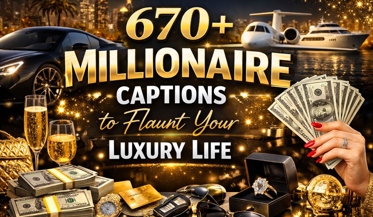 Living the millionaire lifestyle is about more than wealth—it’s a mindset, an attitude, and a story. With these 670+ captions, you can confidently showcase your luxury, hustle, and success on Instagram. Whether you’re flaunting your designer outfits, exotic travels, elite cars, or motivational wins, there’s a perfect caption to match your vibe. These captions help your posts stand out, connect with your audience, and reflect the glamorous and ambitious life you’ve built, turning every Instagram post into a statement of achievement and style.