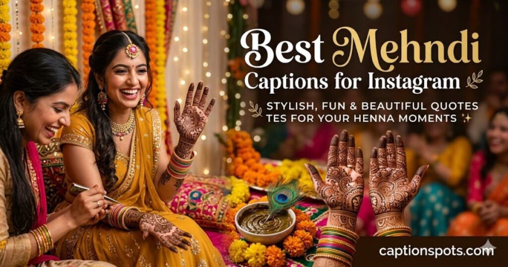 The collection includes stylish, romantic, funny, traditional, and aesthetic mehndi captions suitable for every occasion and mood. 🌿