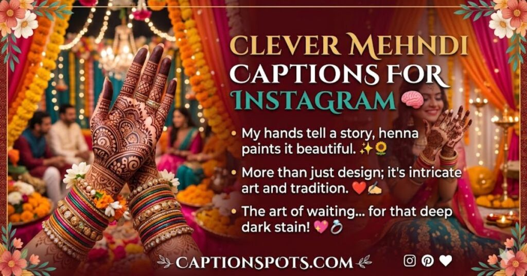 Mehndi captions are creative phrases or quotes used with photos of henna designs to make Instagram posts more meaningful and engaging.