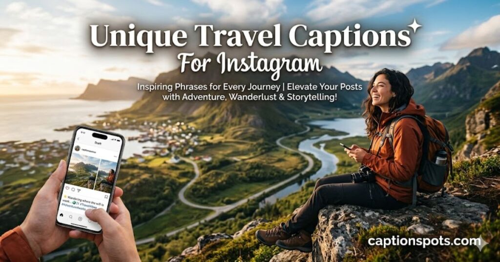 This extensive list includes captions for all moods and occasions. You’ll find funny, inspirational, romantic, and reflective captions, allowing you to express your travel experience in the exact tone you want. A carefully chosen caption can make a simple photo stand out, spark conversations, and increase likes, shares, and comments on your posts.