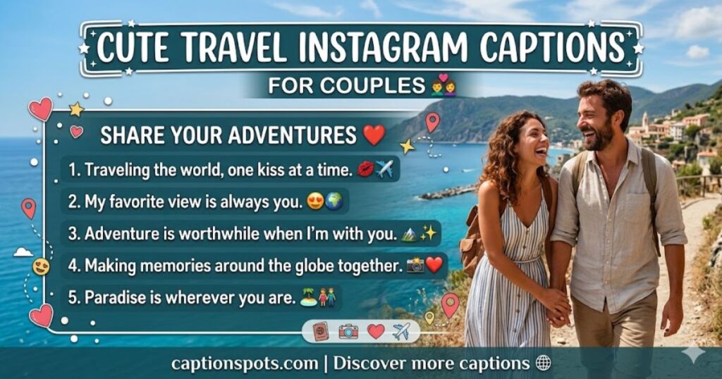 • Cute travel Instagram captions for couples for the Instagram post from the most beautiful shared journey. ✈️